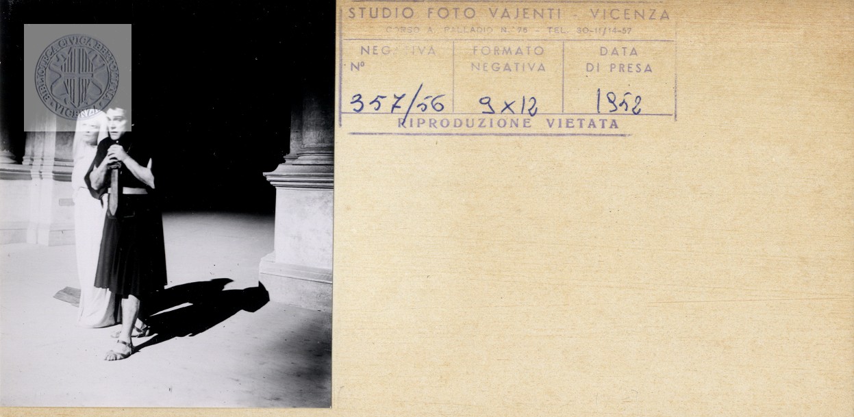 [Le Coefore di Eschilo : Teatro Olimpico, 21-22 settembre 1935 ; regia di Guido Salvini ; interpreti: Irma Gramatica (Clitennestra), Memo Benassi (Oreste)]