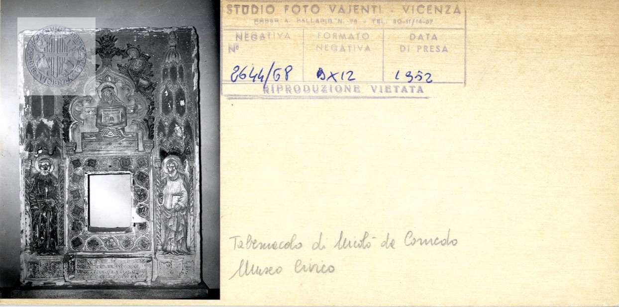[Vicenza] : Museo Civico : Tabernacolo di Nicolò da Cornedo [i.e. Cerchia di Antonio da Venezia, Tabernacolo del Santissimo Sacramento con Cristo nell'avello tra san Pietro e san Paolo ]