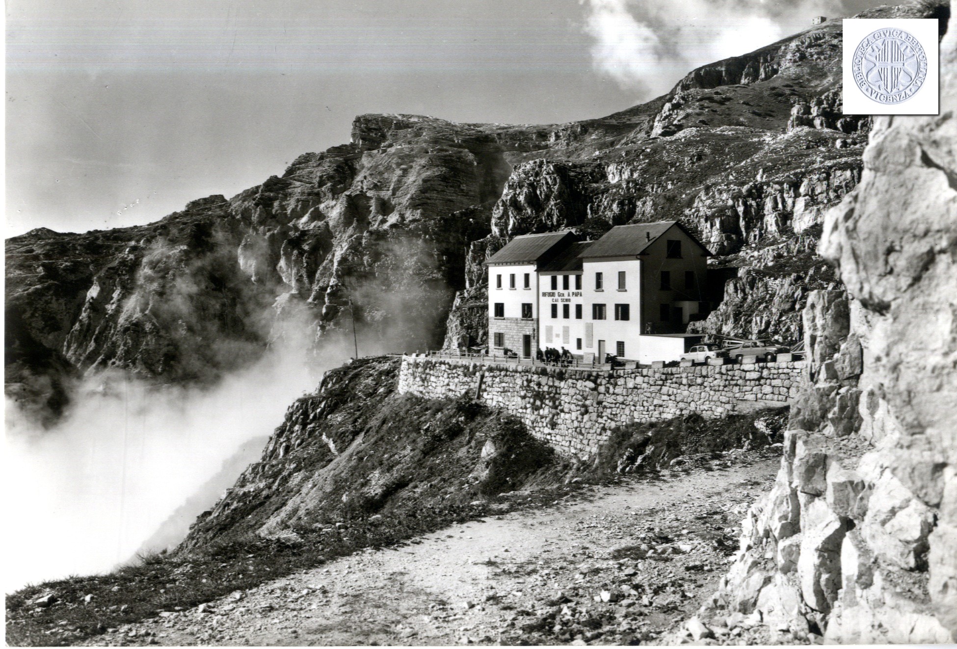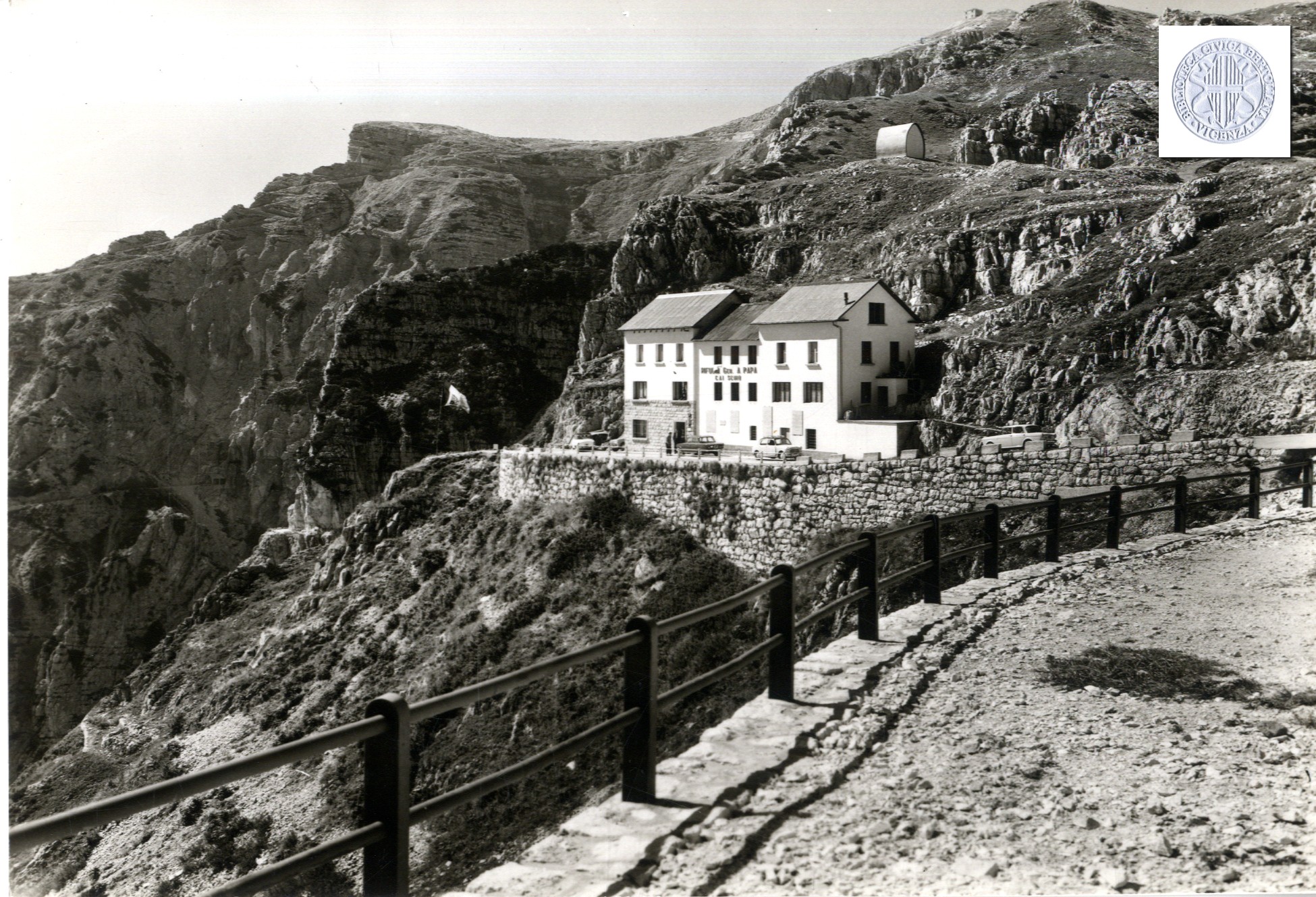 Monte Pasubio : rifugio gen. A. Papa a Porte di Pasubio dopo i lavori eseguiti nell'ottobre del 1967 : [visto] dall'uscita della Strada delle Gallerie